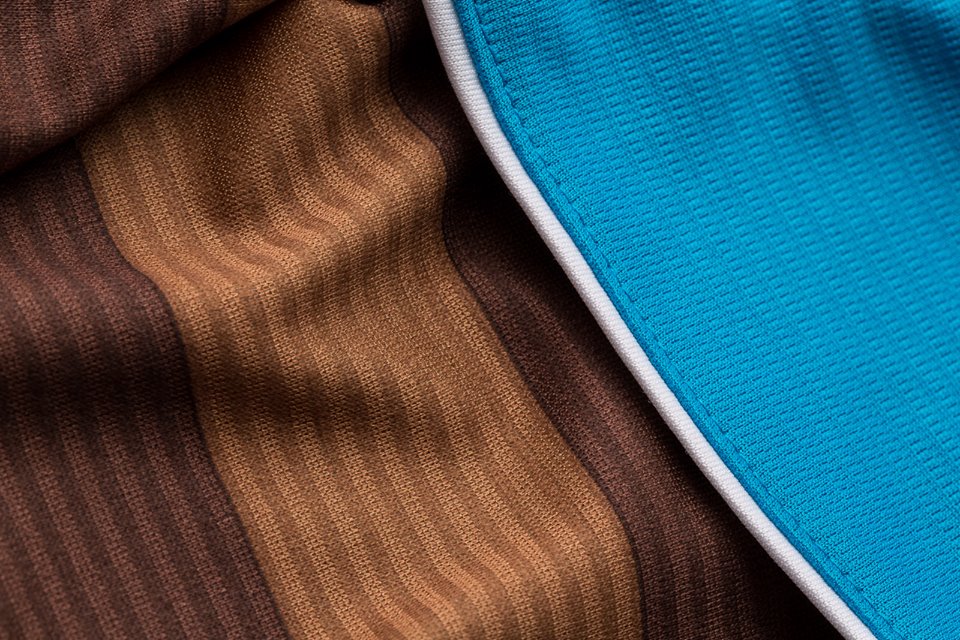 濃淡によるボーダー柄をベースに差し色としてクラブカラーの青を取り入れているほか、全体にシャドーのボーダーが柄を施すなど昨季の迷彩柄に引き続き大胆なデザインとなっている。