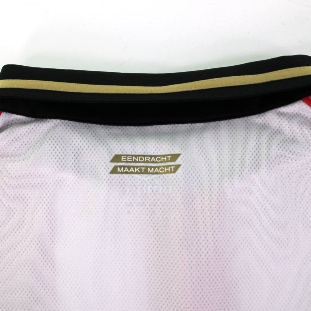 背面は白を基調としているほか、首元には「Eendracht maakt macht」の文字。