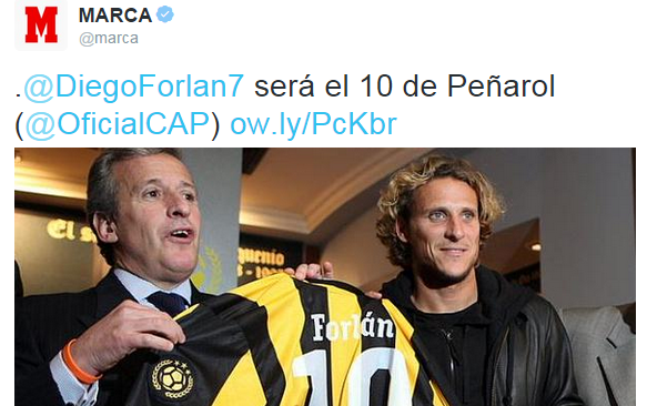 それによれば、フォルランはウルグアイ代表DFでもあった父パブロが同クラブで付けていた4番にも惹かれたであろうが、10番のほうを優先したとしている。フォルランはクラブ側にその意向を伝えたともしており、現在10番をつけているMFホルヘ・ロドリゲスは譲るだろうともされている。