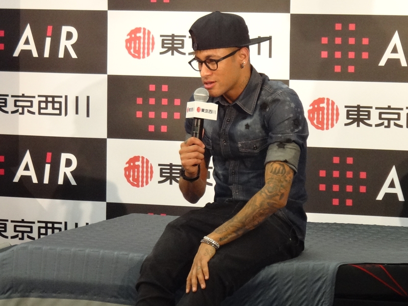 14日、バルセロナのブラジル代表FWネイマールが緊急来日、契約している寝具メーカー「東京西川」のイベントに登場した。
