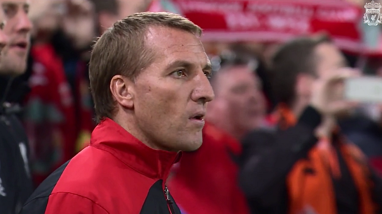 アンフィールドを彷彿とさせる圧巻のムードを演出し、これを耳にしたブレンダン・ロジャーズ監督も思わずこんな表情に。