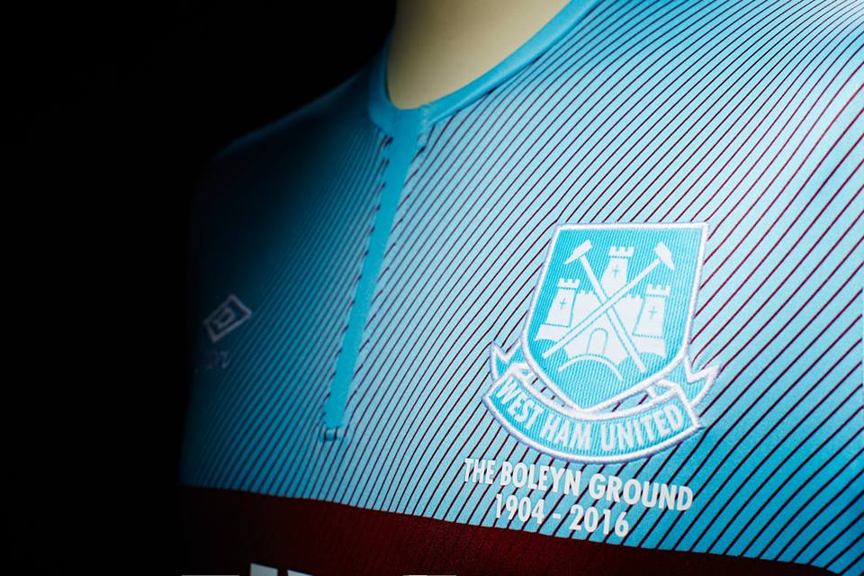 2016-17シーズンから54,000人収容のオリンピックスタジアムへホームを移転するため、現在の本拠地ブーリン・グラウンド(アプトン・パーク)との“お別れモデル”と位置付けられたウェストハムの新ユニフォーム。