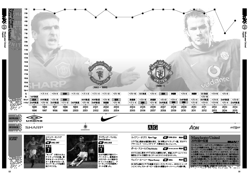 今回は東邦出版の若い方とお仕事をさせて頂きましたが「中田英寿が活躍した2002年ワールドカップの頃は子供だったから記憶にない」という話を受けまして1995年から2015年まで20年間の欧州クラブのフットボールシーンを1冊に詰め込むという無茶な取り組みをしてみました。