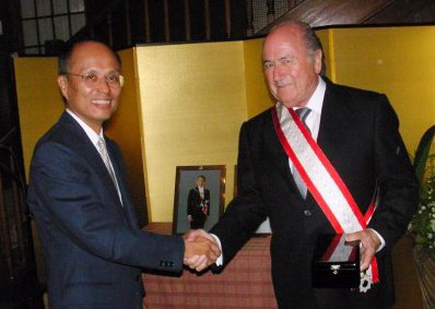 そういえば、5選からたった4日後に辞意表明したFIFAのゼップ・ブラッター会長。2002年のW杯開催国決定では日本を支持した事も理由になって、2009年には日本政府から「旭日大綬章」が与えられました。今でも在スイス日本大使館のサイト内で、その叙勲祝賀レセプションが写真付きで紹介されています。