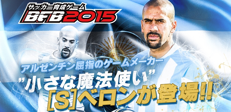 これは、シリーズ累計300万ダウンロードを達成している株式会社サイバードの人気ゲーム『BFB 2015 – サッカー育成ゲーム』が7月29日から開始したタイアップ。現実の選手やクラブチームだけでなく漫画などともコラボを行ってきた同ゲームらしいタイアップで、ベロンという人選がまたサッカーファン心理をくすぐる。