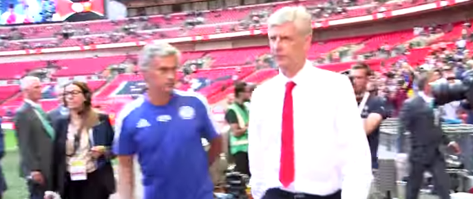 今季からアーセナルへと移籍したGKペトル・チェフに対しても勝利を讃え、ハグを交わしていたモウリーニョ。だが、ヴェンゲル監督との“接触”はなし。