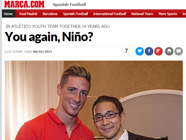 かつてアトレティコの下部組織にいたことでも知られる玉乃氏。トーレスとは当時の旧友という間柄だそう。この14年越しの再会については、スペインの『マルカ』紙も伝えていた。