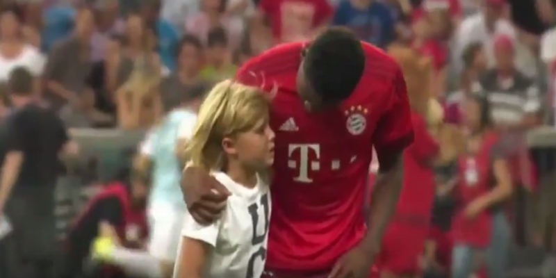 もちろん試合途中ということで彼女を優しくピッチ外へエスコートしたアラバ。ただ、彼と少女のやり取りはこれで終わりではなかった。