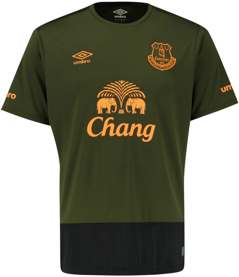 ホーム、アウェイに続きお披露目されたエヴァートンの新ユニフォームは、非常に渋いカラーのサード。なんとも見慣れない感じだがそれもそのはずで、緑を基調にしたデザインはFP用ではクラブ史上初とのことだ。 アクセントのオレンジもいい味を出している。
