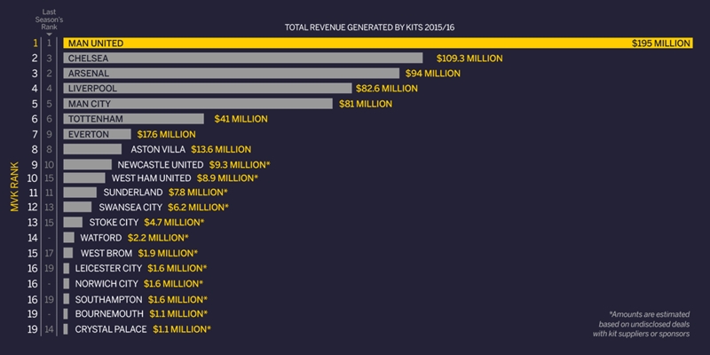 9位以下はサプライヤーとの契約額が不明のため、胸スポンサーのみでの数字。上にも書いたように所々に大きな差が見られる。