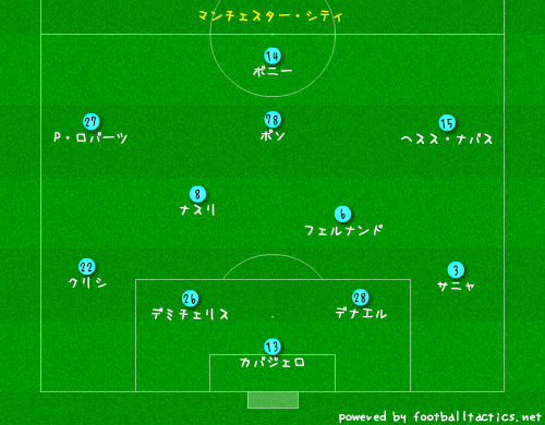 MFフェルナンジーニョ、デルフ、ヤヤ・トゥレ、ダビド・シルバ、スターリング