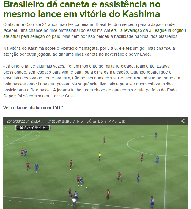 とはいえ、「21歳のカイオはブラジルでキャリアを形成しなかった。早くに日本へ移り、鹿島アントラーズでプロになるチャンスを得た」などというこれまでのキャリアと、「素早くタッチできて、通したいところにボールを通せた」という本人のコメントまでしっかり伝えられていた。