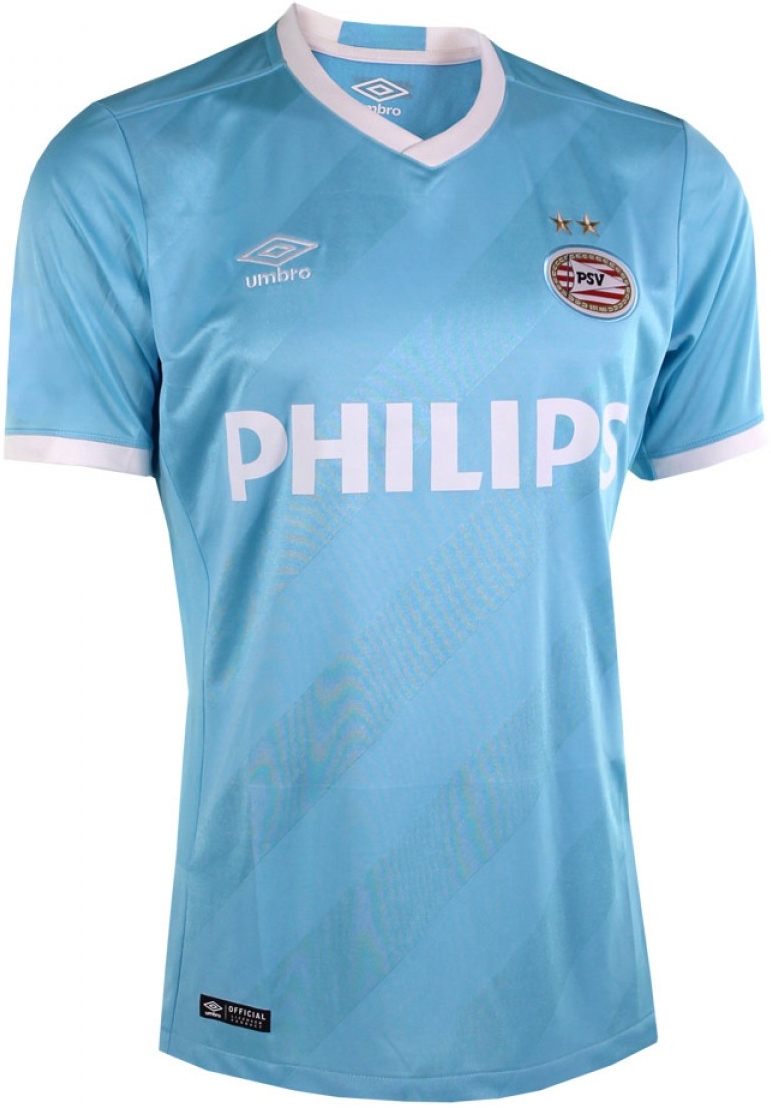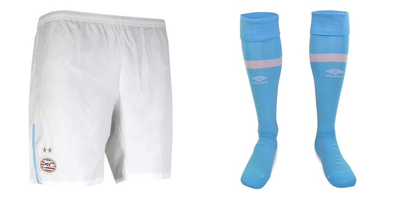 水色はPSVのアウェイカラーとして定番だが、今回は新サプライヤーのUmbroによってレトロに仕上げられたデザインを採用。身頃にはシャドーのストライプが入れられている。