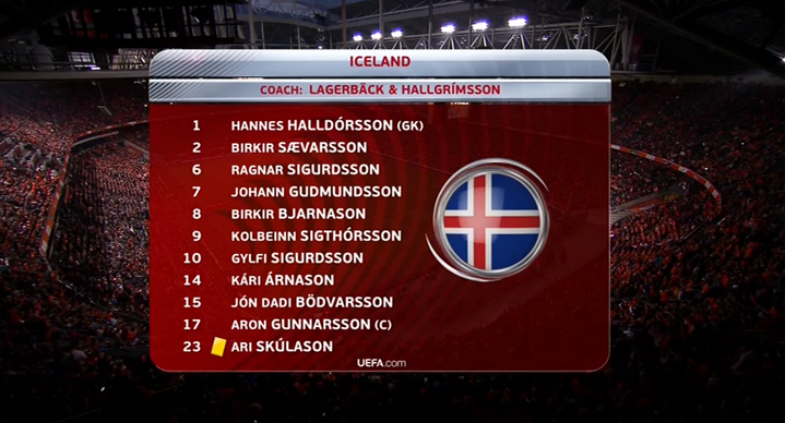 敵地、アムステルダム・アレーナに乗り込んだアイスランド。ラーシュ・ラガーベック監督は全幅の信頼を置く11名をピッチに送り出したのだが、その先発メンバーの名前に特徴的な事態が発生していた。