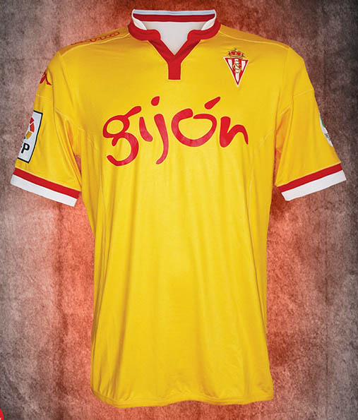 サードは黄色を基調に赤と白のストライプを配置したデザイン。なお、胸スポンサーは「Gijón」の文字から分かるように地元自治体である。