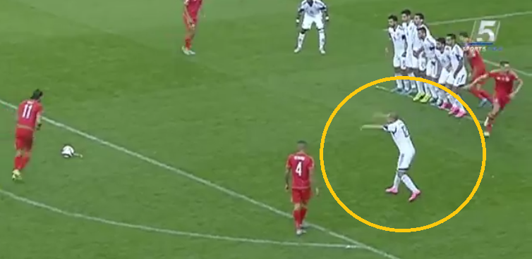 Watch Israeli player Tal Ben Haim jinx Gareth Bale's freekick http://t.co/dTTgIMyjP1 pic.twitter.com/ErPj6UV02R