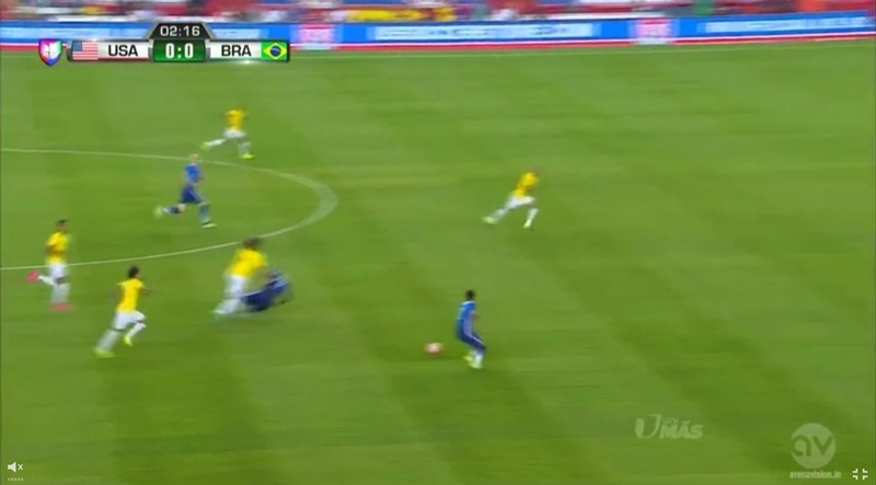 アメリカ代表FWジョジー・アルティド―ルにトリッキーな股抜きパスをされてしまったのは、ダヴィド・ルイス。昨季のCLバルセロナ戦でルイス・スアレスにやられた悪夢が蘇った場面かもしれない。