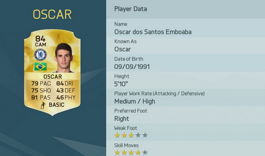 19位 オスカル(チェルシー) 84 CAM