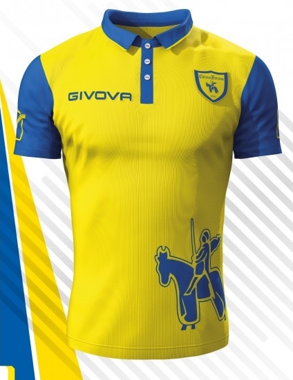 密かに出来の良いユニフォームが多く、2015-16ホームはクラブカラーの黄色と青によるポロネックのシンプルなシャツを採用。正面左腰にはお馴染み、1300年代にヴェローナ黄金時代をもたらした名門貴族、スカラ家のカングランデ1世の騎馬像がモチーフとして入れられている。