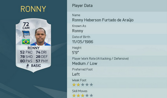 以上がシュート力最強の選手たち。こちらはゲーム上でないと詳しい数値は分からないが、トップにランクされたのはヘルタのブラジル人ホニーであった。