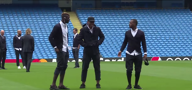 で、このユヴェントス選手たち、エティハド・スタジアムに到着し芝の状態を確認すためピッチ上に移動したのだが、この時も黒カーディガン+黒パンツであった。