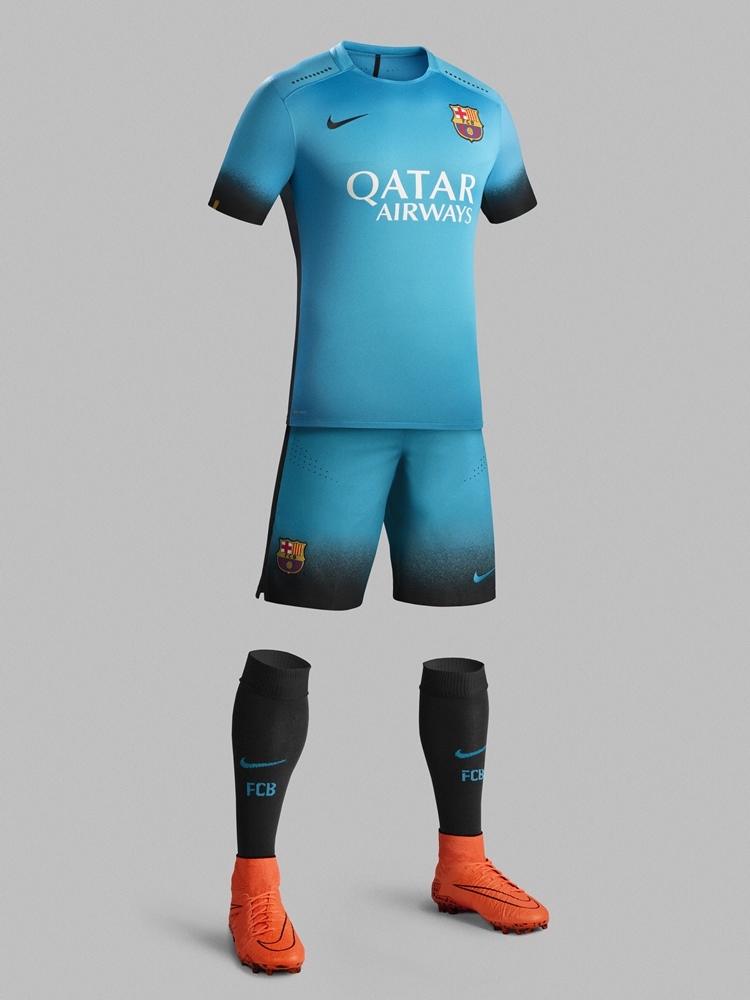 バルサの2015-16サードは、クラブカラーの一つである青を基調としたデザイン。