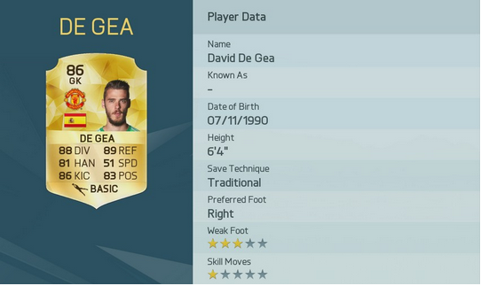 2位 86 ダビド・デ・ヘア マンチェスター・ユナイテッド スペイン 24歳