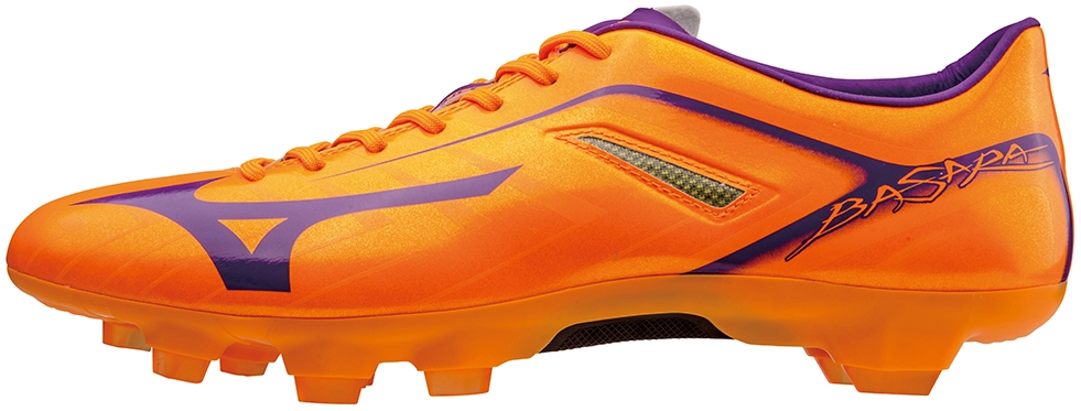 「ラグビーはフィールドのなかで、体格の大きな 30 人のプレーヤーがぶつかり合う激しいスポーツです。私はラグビー選手としては小柄な選手ですが、大きな選手達の間を切り裂き、時には果敢にぶつかり合いながら活躍する姿をたくさんの子供達へ見せ、ラグビーに憧れ好きになってもらいたいという思いを込め、白や黒といったアッパーが主流のラグビーにおいて、フィールドで一際目立つオレンジ色を選びました。また、フィールドという戦場で戦う意思を表現した迷彩柄を入れています」