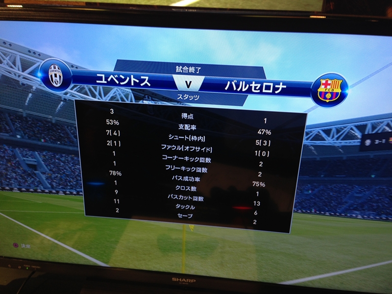 エヴラのエリア外からスーパーボレーで先制され、モラタかジョレンテか忘れるぐらい記憶が曖昧なゴールで0-2。後半開始早々にスアレスの豪快ミドルで1点を返し、そこからは押せ押せの展開でしたが、守護神ブッフォンがスーパーセーブを連発。やめてよ・・・。