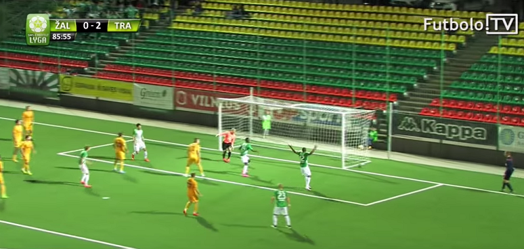 FKトラカイに2点のリードを許した試合終了間際の86分、VMFDジャルギリスのフリーキックは一度相手選手にクリアされるのだが、そのこぼれ球にアンドロ・スブリュガがこのボレー!