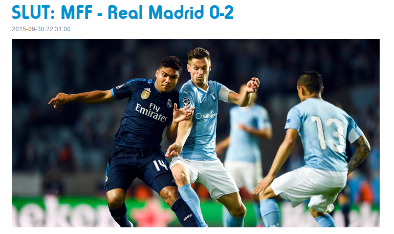 30日(日本時間1日早朝)、チャンピオンズリーグのグループステージが行われマルメはホームでレアル・マドリー相手に0-2で敗れた。