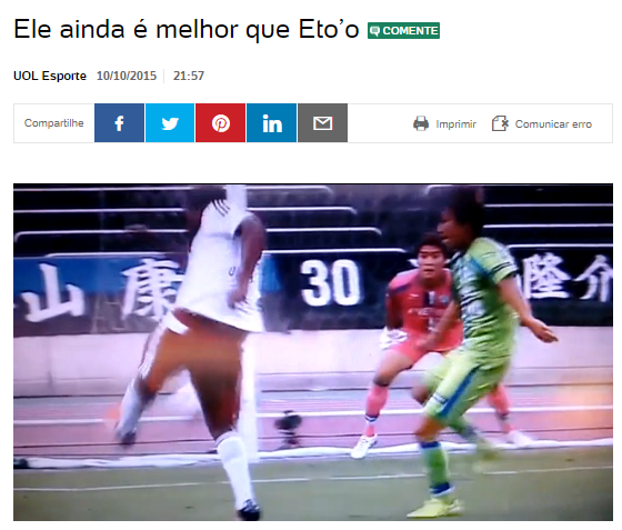 記事内では、「32歳になったオビナには、10年前にヴィトーリアで見せていたスピードはもはやない。だが、それは彼が得点の仕方を忘れてしまったということを意味するものではない。よくあるゴールではなかった。エトーのように(?)胸でコントロールし、DFをひきはがして、回転しながら左足でゴールを決めた」などとも伝えられていた。