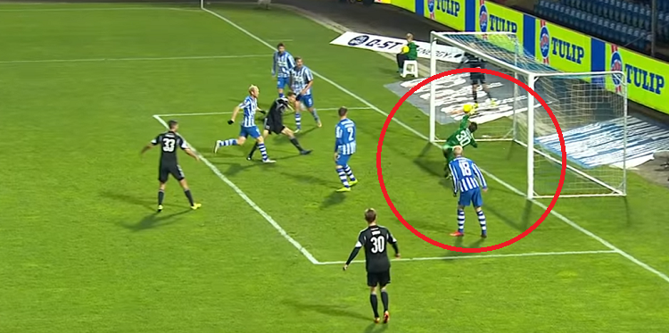 するとこの選手は再びグラウンダーのボールを中に入れ、フリーで待っていたニクラス・ヘレニウスがシュートするのだが…これにエスビャーGKマルティン・ドゥーブラフカが決死の超セーブ!
