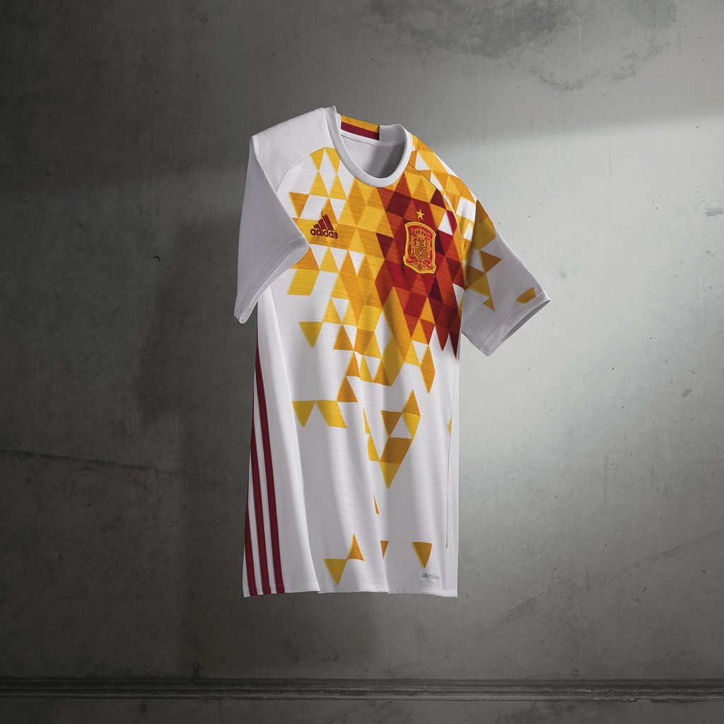 白を基調に赤と黄色の模様というデザインは、1994年のアメリカワールドカップで使用したアウェイと共通。今回はよりスペインらしい創造性と遊び心を感じさせる仕上がりとなっている。