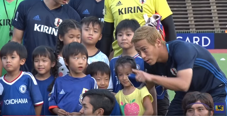 いつもクールな本田圭佑も、少女の前ではこの表情!