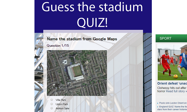 14日、『London24』は「超難度クイズ! グーグルマップで15のスタジアム名を言えるかな?」という記事を掲載した。