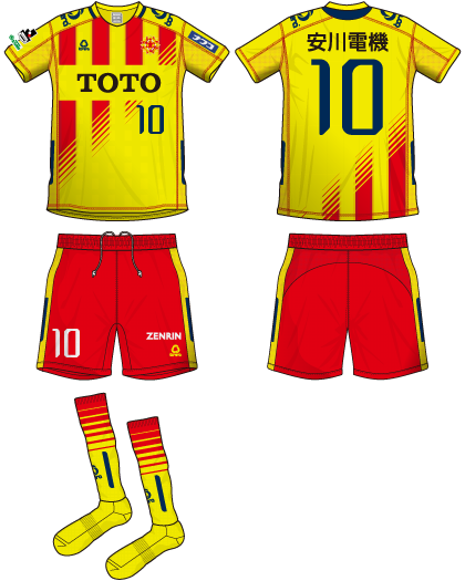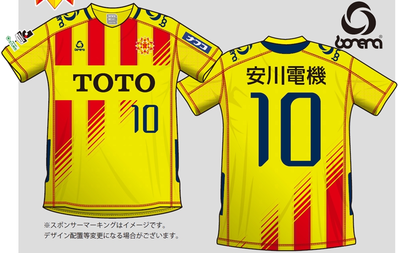 その北九州の2016シーズンに向けた新ユニフォーム、クラブカラーである黄色と赤のホーム(1st)がこちら。