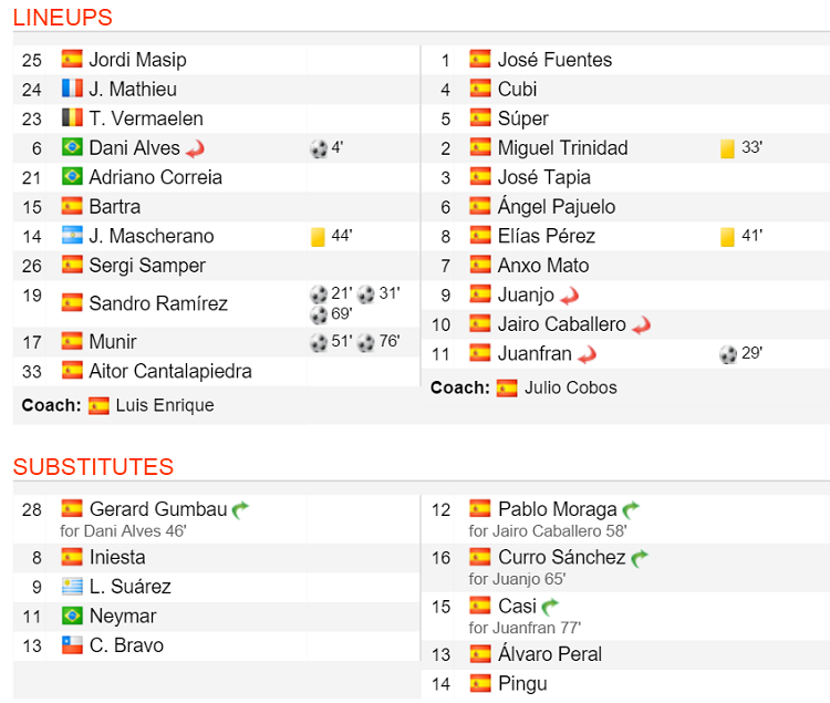 こちらは、『Soccerway』に掲載されているこの試合のメンバー表だ。左がバルセロナだ。