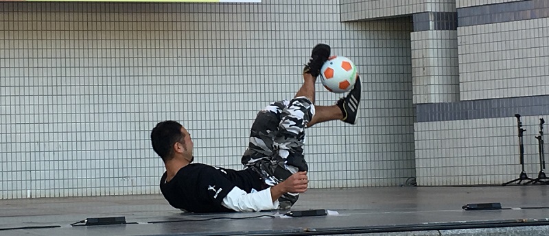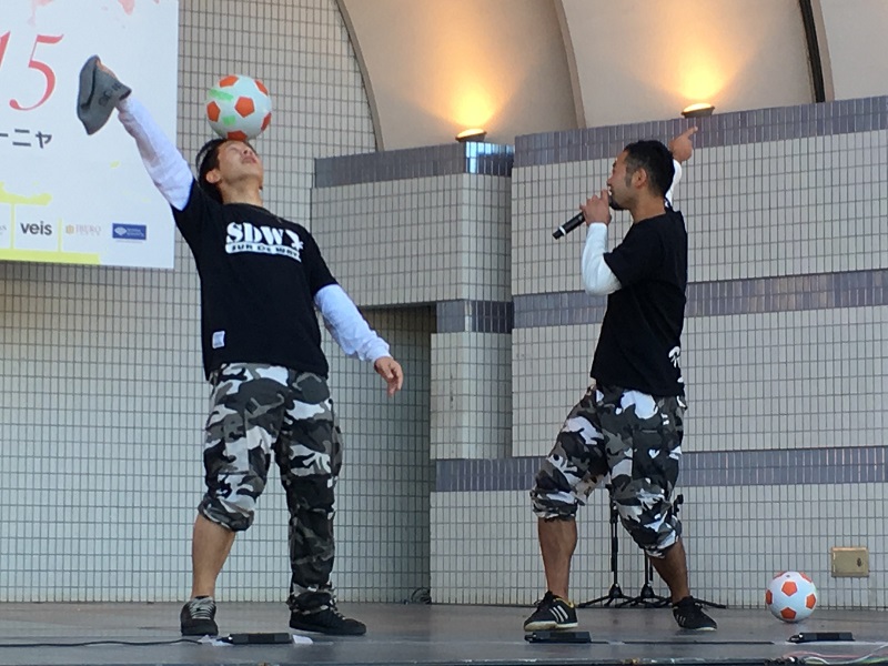 もう1つのお目当てがフリースタイルフットボール「蹴流波 -Sur De Wave-」のステージ。やべっちFC、Jリーグハーフタイムや東京ディズニーランドのステージなどで披露し数々の大会で優勝しているという。