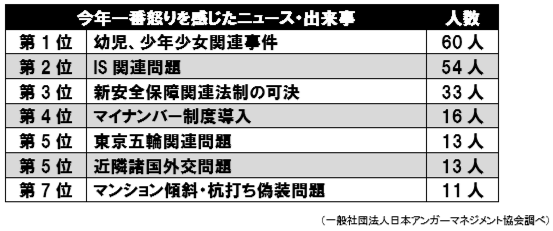 2位はIS関連となっており、人々の命に係わる事件が人々の怒りを買った。