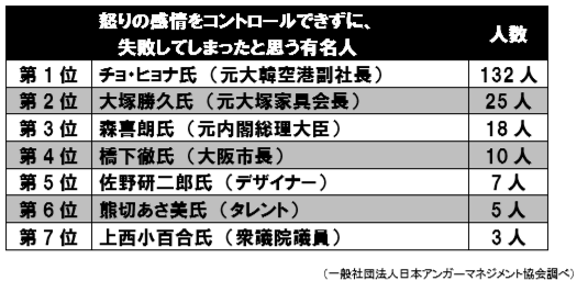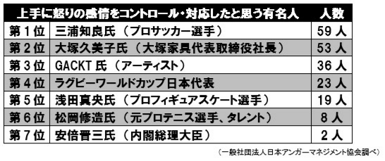 上手に怒りの感情をコントロール・対応した有名人第1位「アンガーマネジメント大賞2015」