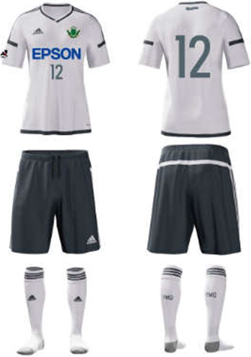 アウェイ(2nd)は定番の白を基調にしたデザイン。差し色やパンツカラーなどは2015モデルのバーガンディ系から緑系へ変更された。