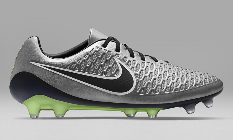 コントロール系スパイク『マジスタ オブラ』の新色は、メタリックピューター×ブラック×ゴーストグリーン。広州恒大戦で活躍したアンドレス・イニエスタは、より一般的なモデルである『マジスタ オーパス』の方を履いている。