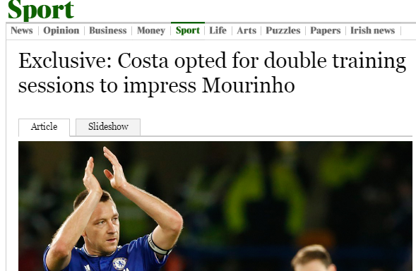 それによれば、コスタはモウリーニョ体制下の最後の3週間において、フィットネスを改善させるために自ら2部練習に取り組んでいたという。