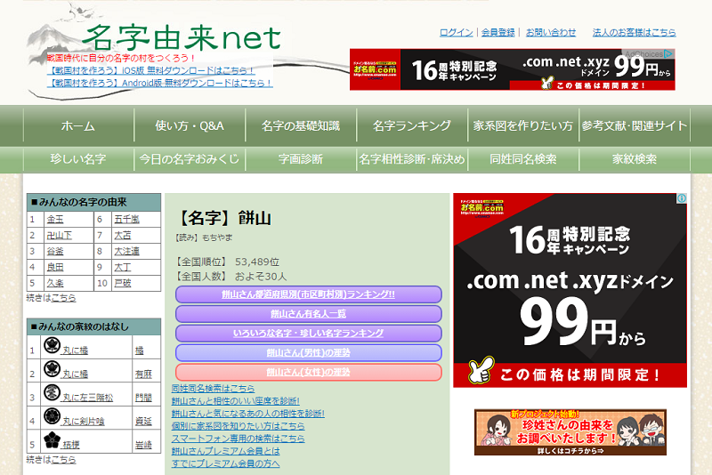 そこで、『名字由来net』で検索をしてみると全国順位53,489位、全国人数およそ30人である。