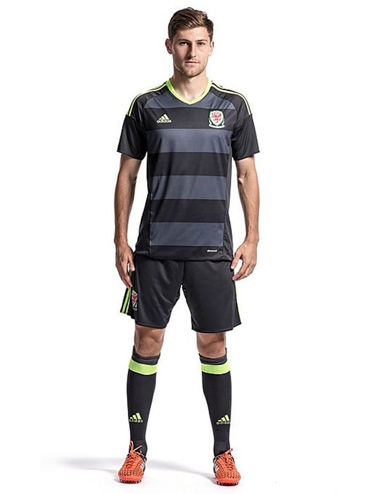 ホームが赤と白のキットということもあってか、アウェイの差し色にはウェールズを象徴するもう一つの色である、緑が使われている。