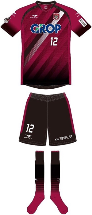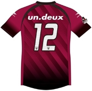 ホーム(1st)はチームカラーのファジレッド。おそらく黒との組み合わせでグラデーションストライプはこの通り背面にも施されている。