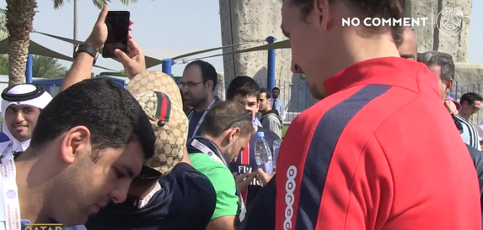 こちらは、ドーハでファンサービスを行うズラタン・イブラヒモヴィッチの様子だ。