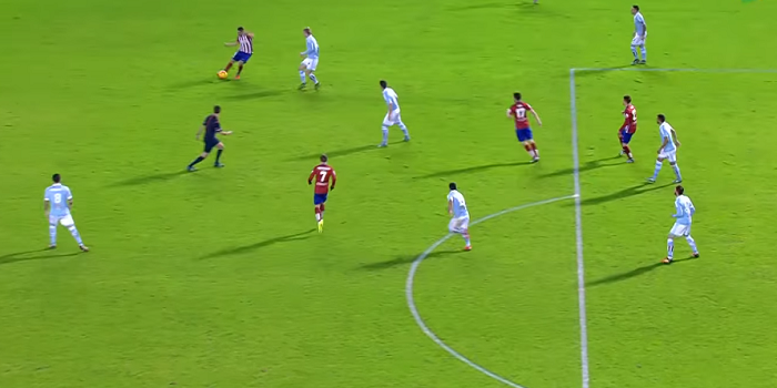 するとグリーズマンがこれをダイレクトで落とし、前方のスペースへとオシャレなパス!ここにルシアーノ・ビエットが走り込んでワンタッチしサイド中へと切り返すと、グリーズマンが走り込み、後半開始早々に先制点を奪った。