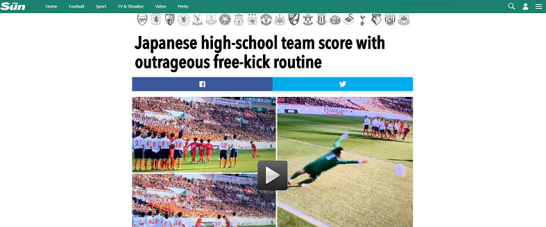 『SUN』は、「日本の高校生チームが風変りなフリーキックでゴールをあげた」とゴールを紹介し、『Mirror』も「日本の高校生チームが驚くべき新しいフリーキックルーティーンを発明」と賞賛。